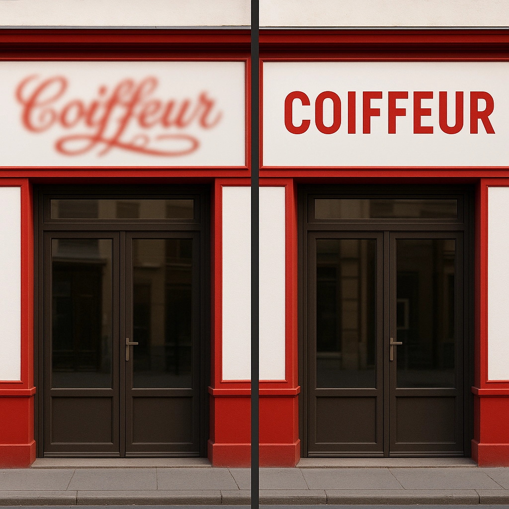 Why It's Hurting You: Decorative fonts that look beautiful up close often become completely illegible from a distance. If people can't read your sign, they can't become your customers.