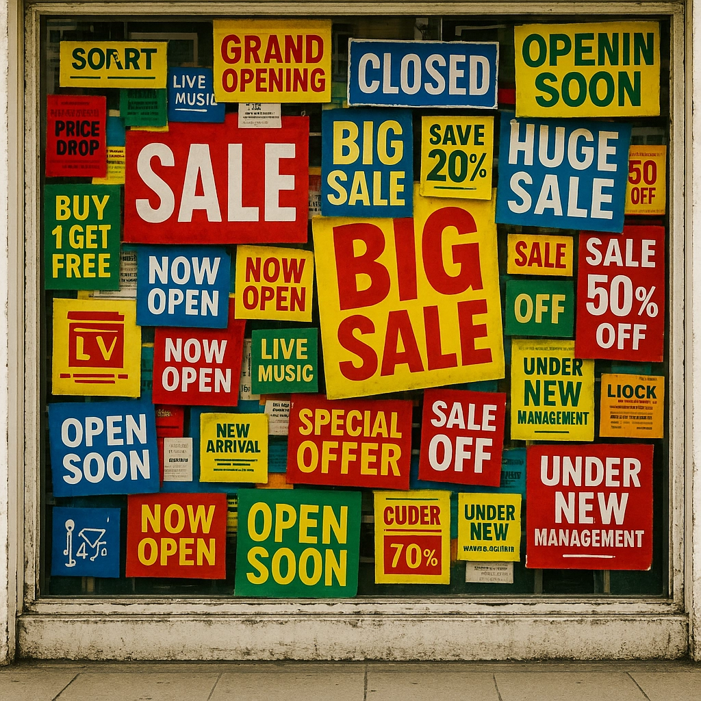 Why It's Hurting You: When customers have just seconds to process your message while driving by or walking past, a cluttered sign becomes visual noise. Instead of attracting attention, you're creating confusion and overwhelm.